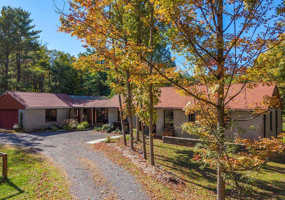 Designed by a Danish American engineer inspired by his experiences during World War II, this remarkable four bedroom, two bath retreat is a masterwork of balance, intention, and enduring craftsmanship. Every element was created to harmonize with its natural surroundings, from the reclaimed materials to the lush landscaping that features native plantings, stone and slate walkways, and a tranquil koi pond, home to Karl, its longtime resident. Set on 6.2 private acres, the property welcomes you with a large horseshoe driveway framed by mature trees and natural stonework. The outdoor spaces are designed for reflection and connection, with stone benches, an herb garden, and a wisteria covered pergola that create intimate places to unwind and enjoy the landscape. Inside, oak hardwood floors, two wood burning fireplaces, and a remodeled kitchen with reclaimed wood cabinetry and quartz counters showcase the home's refined character. Every detail reflects quality and purpose, from the seamless flow of the living areas to the thoughtful reuse of materials. The historic three season room is a true architectural treasure, with large reclaimed beams originally from Thomas Edison's workshop in Schenectady. Perfect for dining al fresco or savoring quiet mornings overlooking the pond and small locust grove, this space captures the essence of timeless comfort. Recent updates, including a four year old roof, a one year natural gas old boiler, new copper and central air to ensure efficiency and peace of mind. A two car garage completes this extraordinary offering. The lower level adds both function and flexibility, featuring a spacious laundry room with abundant storage and a dedicated workshop area ideal for projects or creative pursuits. A rare balance of history, design, and serenity, 37 Swift Road is a home that lives in harmony with nature, crafted for those who value authenticity, sustainability, and the art of living beautifully.