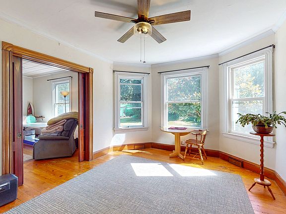 Welcome to 37 Sylvan Street in the historic village of Noank! This classic late Victorian home sits on a corner lot with a beautiful, spacious back yard and detached garage led to by a paved driveway. Upon entry is a front iron gate and covered porch with scrolling, wood detail. Currently utilized as a single family home, this has the rare status of a two family dwelling. Roof installed in 2020, re-flued chimney and vinyl siding make the exterior simple for maintenance. Inside you'll find an untouched, grand staircase and soaring, high ceilings, the hallmark of Victorian interiors. Bow windows face east creating sun drenched rooms filled with warmth. Some TLC brought to this antique gem could revive it to its' natural splendor! Property in Trust.