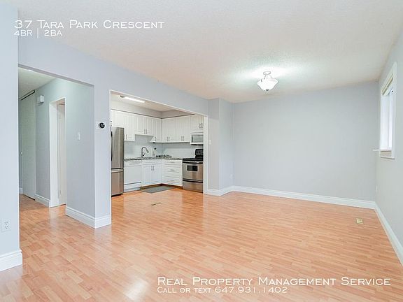 Immediate occupancy 37 Tara Park Crescent, Brampton, Ontario L6V 3E3 Main Street North & Williams Parkway Important update: Real Property Management Service is working to keep all of our tenants and employees safe in these difficult times and these changes have helped us innovate and elevate the way that we do business. To make sure everyone is keeping safe we have stopped all in-person viewings of rental properties and pivoted to digital viewings allowing you to see a property from the safety of your computer or smartphone 24/7/365. All of our vacant properties are getting the royal treatment including professional pictures, floor plans and 3D tours so you can walk through every inch to make sure this is the right home for you. Before you move in we are making sure homes are fixed up and professionally cleaned to ensure that you have a safe and happy home. Home Living: Enjoy living on a quiet tree-lined street in the desirable and mature neighbourhood of Brampton North. This home is a freshly painted, 4 bedrooms, and a neutral decor, with 1 and half bathrooms. Open concept kitchen with granite countertops and stainless-steel appliances. Living and dining room with walkout access to a deck and a fenced garden. A finished lower level with entertainment shelves. This lovely home backs onto a parkette and a ravine. Just move in and enjoy! Home Features: Air conditioning Dishwasher Laundry Single car garage and 1 driveway parking spot Extra Bonuses: Unlimited Wi-Fi Cable included (Rogers) Complex Amenities: Playground Visitor parking Community Features: A short drive to shopping centers, Brampton Civic Hospital, schools and places of worship. Easy access to Toronto or Mississauga via Highways 410, 401 and 403. Walking distance to GO Train and downtown Brampton. Outdoor living includes parklands of Etobicoke Creek Trail and Duggan Park. Rental Terms: Available Now Lease Term - One year Non-smoking Payment Information: Pre-Authorized and online payment options Advertised price for this property includes a 2% prompt payment discount and payments for agreement to maintain the property Plus utilities (electricity and gas) Why are so many tenants giving us 5 stars ratings? Transparency - All maintenance work orders are tracked online, you can talk right to the person making the repair and often schedule a job in minutes. Easy of use - Our systems and tool allow for automation and a great online experience Customer service - Have a problem give us a call, we are always happy to help Rewards - Get rewarded for paying your rent on time. Apply today and become one of our happy tenants! Professionally managed by Real Property Management Service