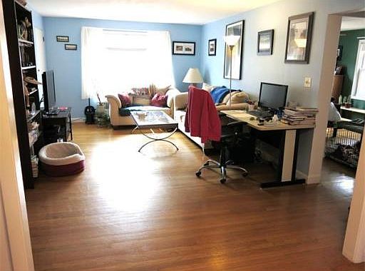 This surprisingly spacious move-in-ready first-floor one-bedroom unit is in an ultra-convenient location on a side street off Waverley Square. It's just one block to the Waverley commuter rail station, supermarket, coffee shop and all local shopping amenities. This four-unit brick building offers green space directly outside the back door. Keep your bills simple and low with heat and hot water included in the modest condo fee, plus newer insulated windows and doors with transferable warranty. There are hardwoods and ceiling fans throughout, a recent washer/dryer in the unit, a large bedroom and pets are allowed. The huge dry basement provides storage space. The roof is roughly ten years old. This unit for sale is the only rented unit; all others are owner-occupied.