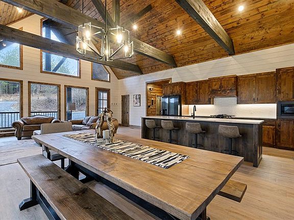 This cabin is located in Timber Creek South, just off N Lukfata Trail. The charming cabin is nestled on a wooded 1.23 acre lot +/- is a traditional build that boasts a modern to rustic design, offering a perfect blend of cozy comfort and contemporary style. the 2 bed and 3-1/2 bath comes furnished and is an ideal retreat for those seeking both tranquility and luxury. Stepping inside you will be greeted by the inviting warmth of a gas log fireplace that sets the tone for the entire cabin on a cold winter day/night, the open concept designed living area creates an airy and spacious feel perfect for entertaining larger groups. This cabin has numerous massive beams interior and exterior, that add structural integrity and plate glass windows to bring the natural views inside. One of the highlights of the cabin is the impressive deck with an outdoor kitchen, fireplace and designated hot tub area that creates a captivating atmosphere that connects the indoor and outdoor spaces. For those that love the crackling sound of a campfire for making s'mores and memories they have a firepit to sit around and enjoy the starry skies. Its traditional build with the touch of modern/rustic design creates a welcoming ambiance. With the fireplaces, massive beams, and impressive deck, outdoor living area, this cabin offers the perfect blend of comfort and outdoors enjoyment. Don't miss the opportunity this property exudes. This cabin has a RV hookup available on the property and an EV charger is being installed. Near listed amenities: #brokenbowlake;#beaversbend #cedarcreekgolfcourse #gratefulhead # abendigos #mountainforkbrewery #tastingroom #mountainforkdistillery #gutterchaos