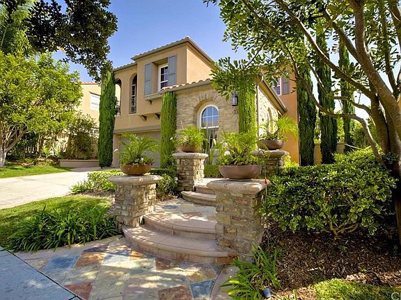 Luxurious and inviting inside and out, this stylishly upgraded turnkey home in San Clemente's master-planned coastal community of Talega is ready for quick move-in. First impressions are memorable, with meticulously landscaped grounds complemented by professional hardscaping that includes raised stone planters, columns crowned by planter bowls, and slate-finished pathways. Enjoy outdoor entertaining in a spacious backyard with large patio and custom cover. Encompassing approx. 2,469 s.f., the 2-story, 2.5-bath home, which is located in Talega's popular Caprizi neighborhood, is filled with natural light that flows throughout its open design. Discover new wood flooring, newer designer carpet, upgraded base and crown molding, plantation shutters, sleek ceiling fans and a contemporary color palette. The main floor hosts an office/library with French doors, a formal dining room, and a spacious great room with stone fireplace and custom built-in shelving and cabinetry. A masterful kitchen opens to the great room and exhibits a nook, island with seating, white cabinetry, granite countertops, tile backsplash and stainless steel KitchenAid appliances. Three secondary bedrooms are located upstairs, including one with a covered deck and another with custom built-ins. An upscale master suite pampers with a walk-in closet, shower with seat, soaking tub and built-in dresser. Appreciated convenience is afforded by extra storage space and built-in cabinetry in the attached 2-car garage.