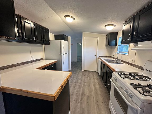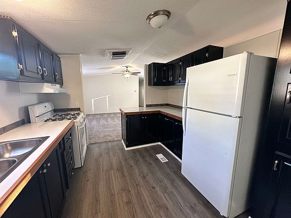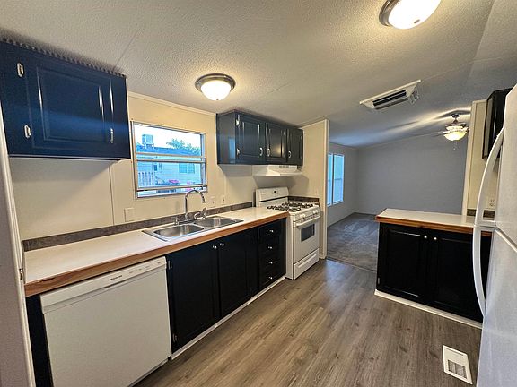 This charming home is ready for its new owners. This 1995 mobile home has been almost completely remodeled. New Roof, floors, dishwasher, evaporative cooler, deck, skirting, fresh paint, new doors, tub surrounds and more... This adorable home is located in a family and pet friendly community conveniently located close to schools, a hospital, walking trails, and all of the amenities you may need. This fully fenced yard on a leased lot is big enough to enjoy BBQs, have kids playing, planter boxes for your garden, and a storage shed. Inside you will find a warm and inviting split bedroom floor plan with updates galore. The master in-suite situated on one side has a beautifully remodeled bathroom with a soaker tub. The other side of the home you have an additional 2 bedrooms with a fully updated bathroom. The spacious living room and updated kitchen are perfect for entertaining. It has separate dining room area or additional space to use for whatever fits your family's needs. The utility room is located off of the kitchen which houses the washer and dryer that are included in the purchase of this wonderful home. This home won't last long so schedule your showing of this beautiful move-in-ready home in an affordable family friendly community.