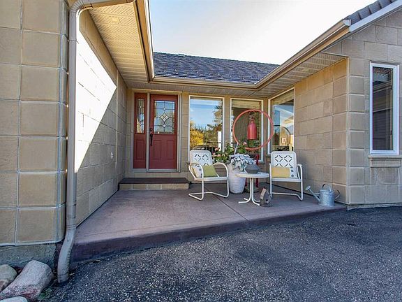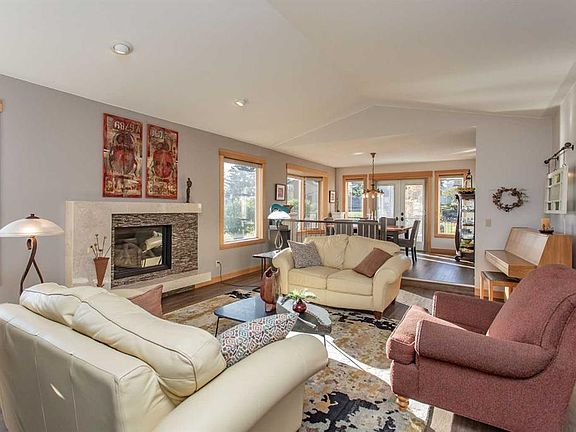 This stunning lakeview bungalow offers over 1,800 sq ft of thoughtfully designed living space with exceptional curb appeal. The upgraded limestone exterior, Euroshield rubber roofing, and oversized heated double garage set the tone for quality throughout. Step inside to find a warm, welcoming main floor with vaulted ceilings, luxury vinyl plank and hardwood flooring, and an abundance of natural light. The chef-inspired kitchen features quartz countertops, custom cabinetry, and stainless steel appliances—perfectly designed for both entertaining and everyday living. The adjoining sunken living room, complete with a cozy gas fireplace, is an inviting spot to unwind & enjoy the views. The spacious primary suite includes a walk-in closet and ensuite with in-floor heat for ultimate comfort. Two additional bedrooms on the main floor both featuring a charming window seat—ideal for family or guests. Downstairs, versatility shines with a fully developed lower level previously used as a B&B. It includes a private entrance, kitchenette/laundry area, wood-burning stove, built-in bookcase, large family room, two additional bedrooms, a three-piece bath, and cold storage with built-in shelving. Enjoy the outdoors from your composite deck overlooking the water, soak in the SpaBerry hot tub, or gather around the firepit in your beautifully landscaped yard. With two wells, in-floor heat, and truly breathtaking views, this property is as functional as it is beautiful.