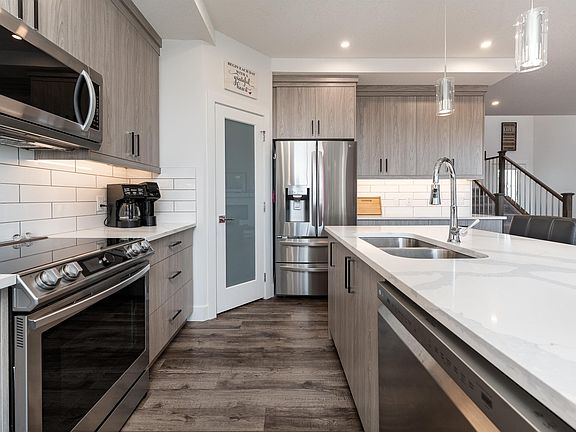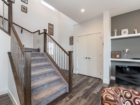 Beautifully finished home, tucked in a quiet cul-de-sac just steps from the River Valley, dog park, ball diamonds, & Andy’s Playground! With 5–6 bedrooms & a fully finished basement, this home offers incredible space & flexibility for families of all sizes. Main floor boasts an open-concept design with a bright living room featuring a cozy fireplace, a spacious dining area, & a kitchen complete with a large island, corner pantry, & plenty of storage. Convenient main floor laundry and a 2pc bath add to the functionality. Upstairs, you’ll find the primary suite with 5pc ensuite, plus 3 additional bedrooms. The 4rd bedroom is oversized with a closet and door, making it perfect as a bedroom or versatile bonus room. A 4pc main bath completes the upper level. The fully finished basement adds more living space with 2 additional bedrooms, a rec room, a full 4-piece bath, and a linen closet. Enjoy comfort year-round with A/C & heated attached garage. The landscaped yard features large deck, retaining wall & Shed.