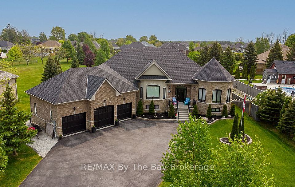 Are you looking for space, style, and the perfect location? This beautiful home offers over 2,600 sq. ft. of living space on the main floor plus an oversized triple garage perfect for parking and storage. Sitting on a 3/4 of an acre lot in one of Wasaga Beach's most sought-after communities surrounded by million dollar homes of the same quality. You'll enjoy a country feel while being only minutes from town. Step inside and discover open-plan living at its best. The recently renovated kitchen features a large island and flows into the family room with cathedral ceilings, a perfect space for gatherings. The slightly separate more formal living room living and a dining room offer extra room for entertaining. The primary suite is a true retreat with a walk-in closet, second closet, double vanities, soaker tub, and glass shower. Two more spacious bedrooms share a full bathroom, making this layout ideal for families, couples, or retirees. Enjoy 9 ceilings, plenty of natural light, and a large backyard with an extended deck perfect for relaxing outdoors. The partially finished basement is ideal for extended family, and guests. It includes two staircases, a full in-law suite with kitchen, three bedrooms, two full bathrooms, a recreation area. Plus a large unfinished space for storage or future projects. This location is hard to beat! Walk to MacIntyre Creek trails, drive just 5 minutes to shopping, dining, and the beach, 15 minutes to Collingwood, and 25 minutes to The Village At Blue Mountain (Ontario largest ski resort).Recent updates include a new roof (2022) and new black front windows (2025).This is not a cookie-cutter home its a unique property in an established community of estate homes.