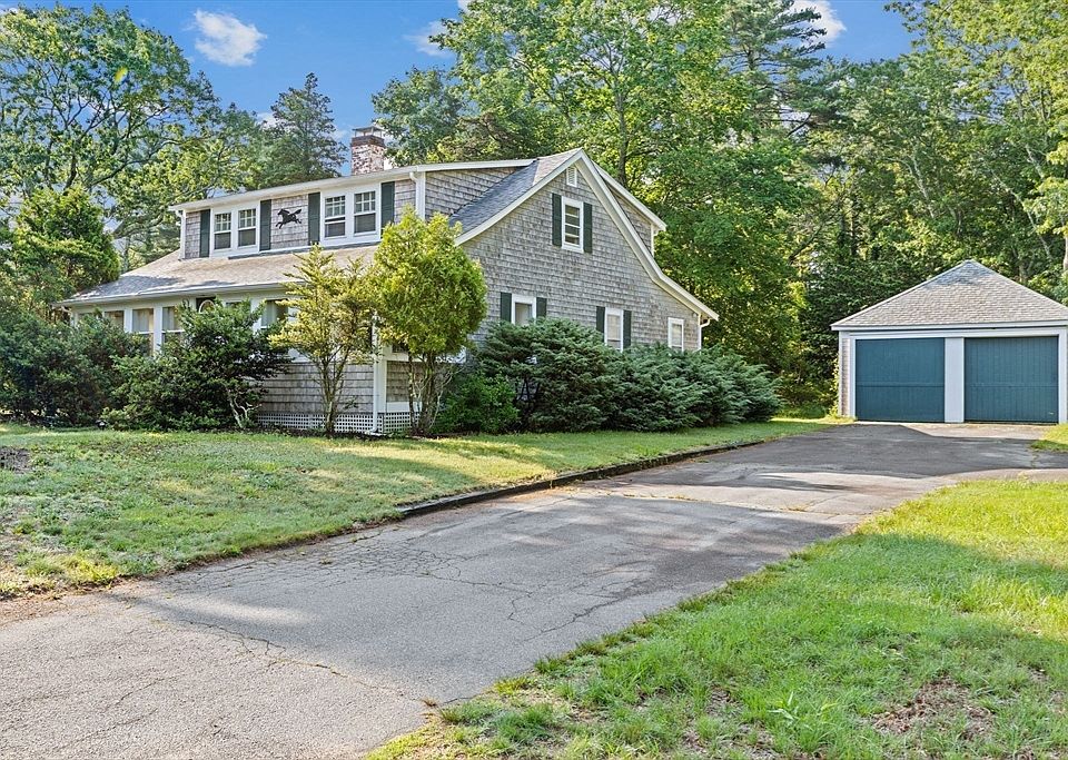 Nestled on a picturesque 1.5 acre lot, just steps from Marshfield Golf Course, this inviting home offers both charm & potential.Inside, you’ll find a spacious living room with a cozy fireplace, an expansive foyer/mudroom An open concept kitchen flows seamlessly into the dining room with French doors & built in cabinet. A bright & airy family room, enhanced with newer carpet, window treatments & wall lighting adds warmth & comfort.Fresh interior paint throughout creates a welcoming atmosphere.Upstairs, are three generously sized bedrooms plus a flexible office space.The basement features a partially finished bonus room with an oversized closet, ideal for future expansion or customization.Outside, a detached two-car garage, outdoor shower & two storage sheds provide abundant space for equipment/extra storage.With solid bones, hardwood throughout & timeless character, this property presents a rare opportunity to personalize, enhance or expand.Great opportunity in a desirable location.
