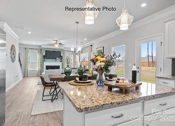 Welcome to The McGinnis at Green Acres! This two-story home features open-concept layout seamlessly connects the spacious family room, kitchen, and breakfast / dining area. The kitchen is equipped with 42" modern cabinets, quartz countertops, island, walk-in pantry, and stainless-steel appliances. Vinyl plank flooring extends throughout the first floor. Upstairs, the large primary suite includes a tiled shower, double quartz vanity, linen closet, and a generous walk-in closet. You'll also find three additional bedrooms each with walk-in closets, a convenient laundry room, and a versatile loft space.