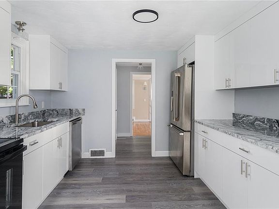 37 Westbrook Road is set on a very quiet cul de sac close to just about everything. This home was just completely rehabbed and has a new kitchen that features high gloss contemporary white cabinets with soft close drawers, stone counters, and brand new black & stainless appliances. The flooring in the kitchen, adjacent breakfast nook and sitting area is a very sharp looking engineered wood. Both baths are brand new and also have a nice contemporary feel. The hardwood floors throughout the rest of the house are made of birch and have been beautifully refinished. There is a fireplace and built-in bookcases in the living room, a partially finished basement with new carpet, and a new hot water tank. The back yard is fenced, the roof is fairly young, the exterior is maintenance free shake shingle vinyl siding, and there are replacement windows throughout. Nearby is Dave’s Market, McDermott Pool & Thayer Arena, marinas, and Warwick City Park. Offers are due on Monday 11/11 at noon.