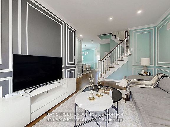in designing the interior with a blend of French and modern styles, characterized by bright and harmonious color schemes. The open-concept kitchen boasts stainless steel appliances, complemented by stylish tiled floors and cabinets. The spacious and bright living and dining areas feature hardwood floors throughout, with lots of pot lights through out the entire house.