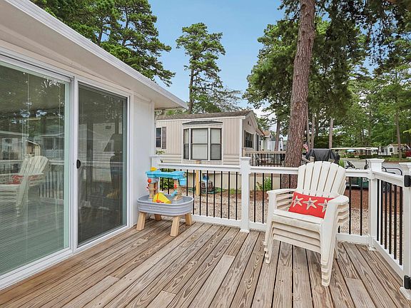Welcome to 37 Wildwood Avenue at Holly Lake Resort—your happy place at the Jersey Shore! This delightful 3-bedroom (one located in the Florida room and separated by a wall divider for added privacy), 1-bath home with a bonus Florida room is the perfect retreat for relaxing weekends or fun-filled summers. Fully furnished and move-in ready, it features cozy and bright living spaces, full-size kitchen appliances, and a freshly built deck with vinyl railings and black spindles—perfect for morning coffee or evening chats. Recent updates include a new sliding glass door, new heat pump (2023), new water heater (2024), new freestanding A/C unit for supplemental cooling, new carpet, repainted cabinets, and stylish furnishings throughout. With three bedrooms and two sleeper sofas, this home comfortably sleeps up to 10. A private shed is included for extra storage, and Avalon beach tags stay with the home! Holly Lake is a friendly, gated, seasonal resort community with fantastic amenities including a lake for kayaking and fishing, a pool, clubhouse, playgrounds, and wooded trails. The condo fee is $1,600 annually and includes water, sewer, trash, and access to all community amenities. You own the land—no ground rent—and the season runs from March 1 through December 1. Plus, you're just a short drive to Wildwood, Cape May, Sea Isle City, and all the best shore activities. Whether you're looking to unwind or explore, this low-maintenance getaway has it all. Come see it today—you’re going to love it here!