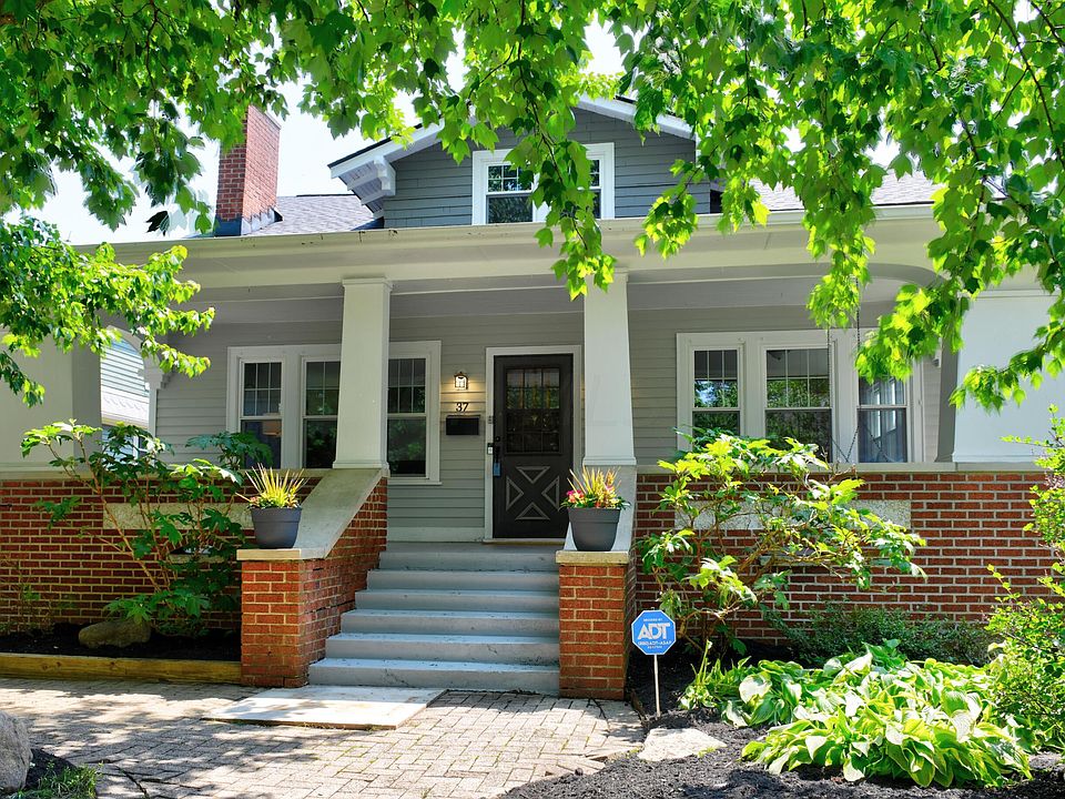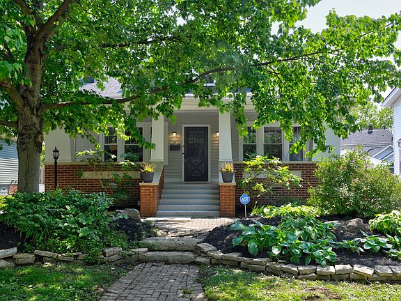 Located in Clintonville's Northmoor Park, this Craftsman Bungalow with preserved charm boasts hardwood floors, French doors, fireplace, subtle farmhouse architecture, covered front porch, rear Trex deck, and fenced yard. Entry level den/office, dining room, and eat-in space kitchen. Upstairs is currently a 1,000 square foot bedroom but could easily be subdivided into additional bedrooms. Solid wood cabinetry, stainless steel appliances, updated receptacles/switches/lights fixtures, garage door '23, roof '23, windows '20, exterior painted '22, upstairs interior painted '23, ceilings/crown painted '23. Nearby Whetstone Park of Roses, Rec Center, Olentangy Trail, Library, Clintonville Farmers Market, Dining, Commerce.See documents tab info for list of improvements. Opportunity awaits.