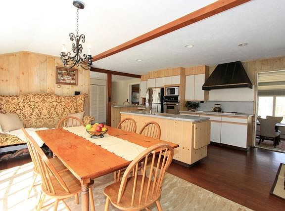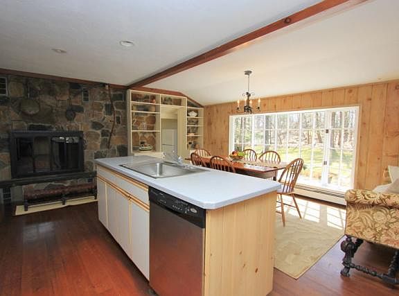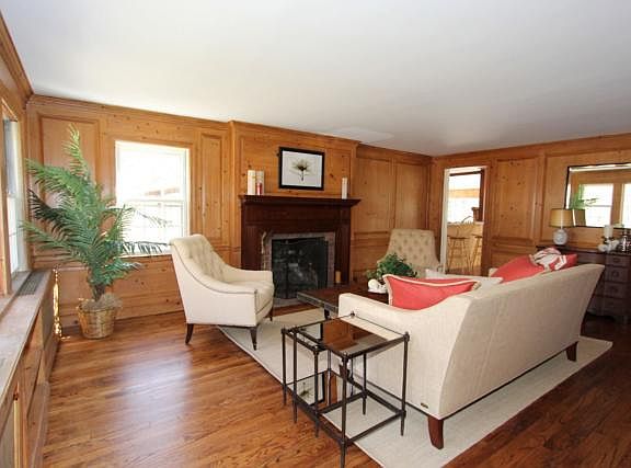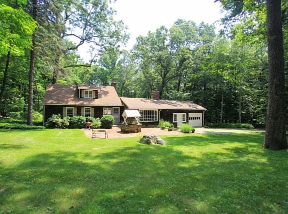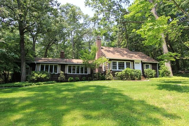 Formal living room with beautiful hand-carved paneling and fireplace. Wonderful country eat-in kitchen with fireplace; dining room; master suite. Level backyard with rock outcroppings and Mountain Laurel. Private country road within walking distance to town.