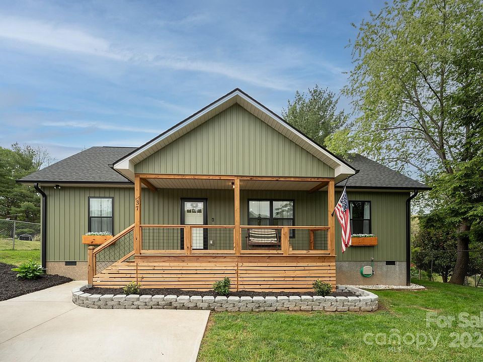 Buyers, look no further! This newer construction, move-in ready home checks all the boxes. It features vaulted ceilings in the main living area, open concept floor plan, quartz countertops and eat-in kitchen, spacious primary bedroom with private ensuite and walk-in closet, additional space in the sunroom, and more. Take advantage of the level lot, front and back porches, and fire pit for entertaining friends and family outdoors. Only minutes from the interstate and downtown Canton, both Wayesville and Asheville are a short drive away and the options for shops, restaurants, and breweries are endless. Showings begin Sunday, May 5th.