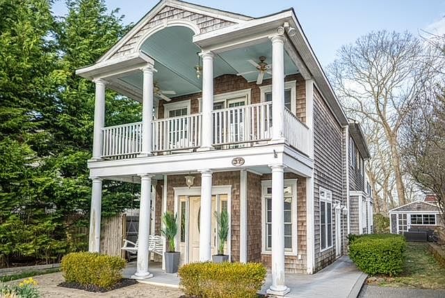 Step into this distinctive home with Southern Charm! Front porch! Enjoy the oversized primary br w/balcony and tray ceiling, 2nd br also w/balcony. Private backyard for ultimate privacy, offers a firepit, detached shed converted to bar area, ideal for summer entertaining.
