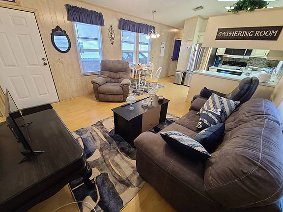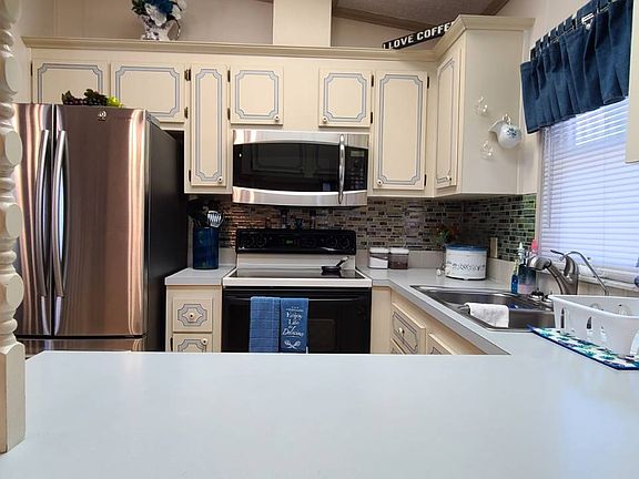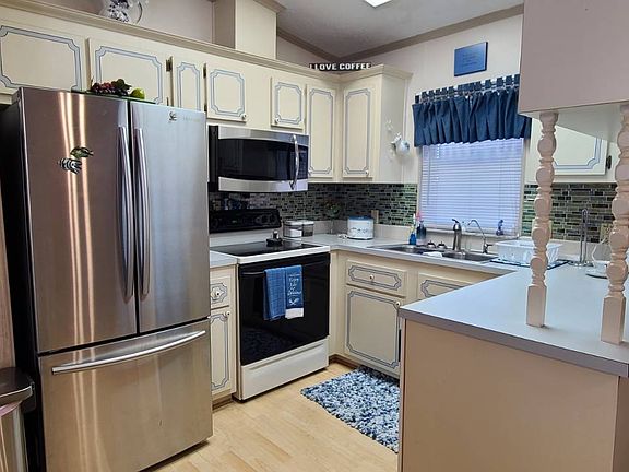 55+/LOTRENT$445/624SQFT/2BED2BATH/LOW.LOT.RENT/NEW.WINDOWS This beautifully maintained property that is ready for its new owners! This inviting home features a spacious, covered carport large enough for a full-size truck and a convenient detached metal storage shed for all your tools and toys. Inside, you'll find newly installed durable, wood-look laminate flooring throughout the main living areas-no carpet to worry about! Newly Installed Double Paine Insulated Windows, and a newly installed roof. The heart of the home is the open-concept kitchen and living area, perfect for entertaining. The kitchen has been tastefully updated with a stylish mosaic tile backsplash, custom-accented cabinetry, and a suite of stainless steel appliances, including a stainless steal refrigerator, built-in microwave, and dishwasher. The bedroom offers plenty of space for a large bed and features a closet with mirrored sliding doors to maximize light and storage. The hallway includes a high-end stacked front-load washer and dryer set, along with additional cabinet storage. Outside, the home sits on a tidy lot with brick-pattern skirting and a well-maintained Comfortmaker AC unit to keep you cool year-round. Whether you are looking for a seasonal retreat or a permanent residence, this home offers comfort, style, and convenience.