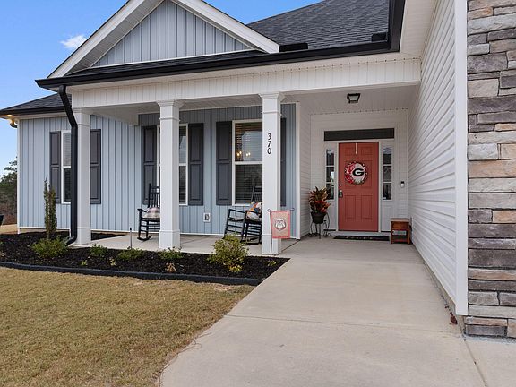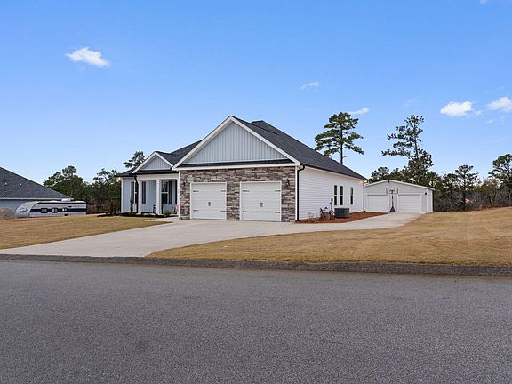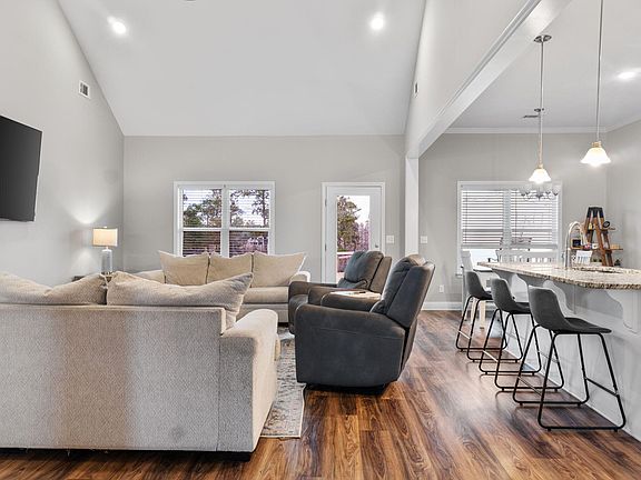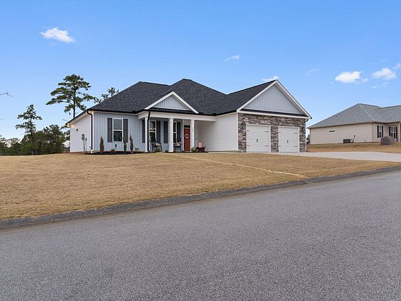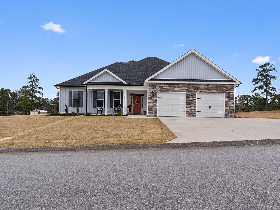 #Comfort&Charm Come home to this lake front home after a long day and unwind on the classic rocking-chair front porch, perfectly positioned to overlook the beautifully landscaped yard. Step through the spacious foyer and you'll immediately notice the luxury plank wood-look vinyl flooring, detailed crown molding, and soaring ceilings that set the tone for the rest of this thoughtfully designed home. The gourmet kitchen is sure to impress with its custom tiled backsplash, granite countertops, stainless steel appliance package, and a large island that seats three that is perfect for casual meals or conversations while you cook. The kitchen flows seamlessly into the breakfast area and spacious great room, creating an open and inviting space for everyday living. For more formal gatherings, the elegant dining room offers coffered ceilings and classic wainscoting, making every meal feel special. Retreat to the large master suite, complete with tray ceilings and recessed lighting for a warm, elevated feel. The luxurious master bath features dual vanity sinks with framed mirrors, a custom tiled walk-in shower with built-in niche, and an expansive walk-in closet. Don't forget to step out back to the covered rear patio that is an ideal spot for relaxing, grilling, or entertaining friends and family year-round. Do not forget to check out the detached 2 car garage. This home truly has it all: comfort, craftsmanship, and the perfect blend of style and functionality.