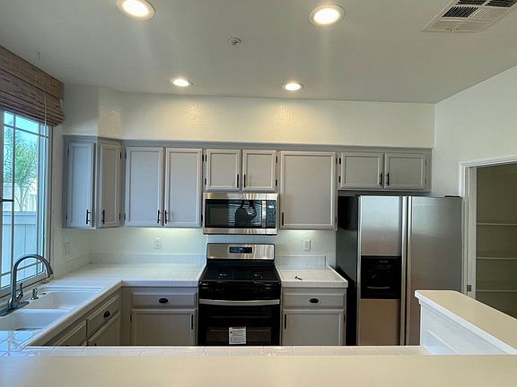 Beautiful and bright home features 1088 sq. ft. and has a fully equipped kitchen with new stainless-steel appliances. Large pantry and window in kitchen. Tile flooring and wood flooring downstairs and brand-new neutral carpeting upstairs. Expansive ceilings with ceiling fans and upgraded light fixtures. Living room has fireplace and sliding glass doors leading out to fenced low maintenance backyard. New Air Conditioning/Central Heat. Full-size washer and dryer. Attached 1 car garage comes with an additional assigned parking space. Community offers a pool, spa, BBQ area and private fenced dog park.