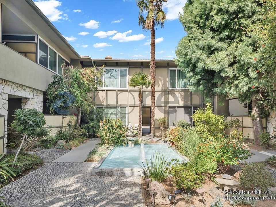 The property includes a tranquil courtyard with lush greenery and a soothing fountain, providing a peaceful retreat in the heart of Pasadena. The primary suite is generously sized with a ceiling fan and ample closet space, ensuring comfort and convenience. The bathrooms are elegantly designed with modern fixtures and finishes. Additional features include a sunroom for relaxation and covered parking for your convenience. Located in a desirable area, this unit offers easy access to local amenities, dining, and entertainment, making it an ideal place to call home.