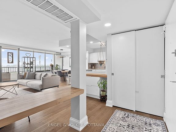 Westboro Living at Its Best! Welcome to a show-stopping 2-bedroom, 2-bath unit in the heart of Westboro Village. Fully renovated with an eye for luxury and functionality, this suite boasts stunning upgrades throughout: a chef's kitchen with a precision Fisher & Paykel induction stove and refrigerator, incredible storage, and leathered quartz and live-edge counters. A spa-like full bath and ensuite, new wide hardwood floors, upgraded lighting, doors, and hardware, electric window coverings, plus intuitive built-in storage solutions. The expansive new wall of windows floods the space with light and frames a panoramic view that stretches across Westboro, the Ottawa River, and downtown. Enjoy a full-length 42+ ft balcony perfect for coffee at sunrise or cocktails at sunset. The spacious layout includes an ensuite bathroom, a walk-in closet, custom-built-ins for the 2nd bedroom, in-unit laundry/pantry, 1 underground parking spot, and a locker. Building amenities include an indoor pool, sauna, meeting rooms, fitness, and a large common patio area. Walk to Westboro Beach, the best of village shops and dining, scenic bike paths, and future LRT access. This could easily be the most exceptionally renovated unit in the building.