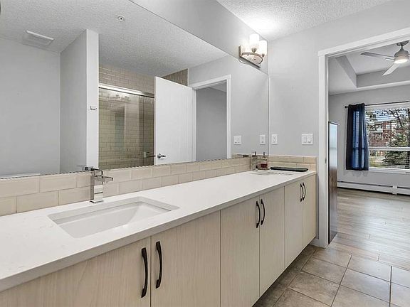 Beautiful 2 bedroom, 2 full bath condo with indoor titled parking in an exceptional North Central Calgary location. This unit features 9 ft ceilings, quartz countertops with a large island, soft-close drawers, A/C, and LVP flooring throughout (no carpet). Immaculately maintained by the original owner and never smoked in, with no pets or children, this home is extremely clean and move-in ready. Just a 2-minute walk to tennis/pickleball courts and a playground, and an 11-minute drive to the airport, this is one of the most convenient communities in the area. Enjoy close proximity to 7 schools, including the new North Trail High School (opened 2023), plus 3 major shopping hubs with T&T Supermarket, Superstore, Sobeys, Canadian Tire, Home Depot, Shoppers Drug Mart, Landmark Cinemas, VIVO Rec Centre, the public library, and the North Pointe transit hub. The MAX Green bus gets you downtown in approx. 47 minutes, or drive downtown in approx. 18 minutes. Outdoor amenities include two community ponds, scenic walking/bike paths, and a year-round driving range just down the street. Easy access to Deerfoot Trail and Stoney Trail. A like-new condo in an outstanding location—don’t miss this one! This building does not allow short term rentals (Airbnb) so you don't have to worry about lots of strangers coming in and out constantly or noisy parties.
