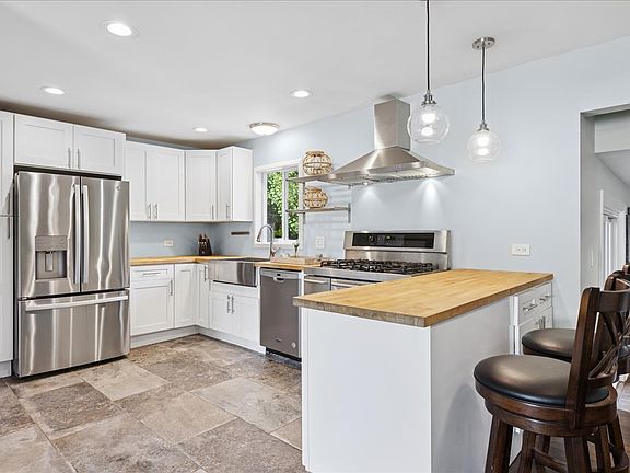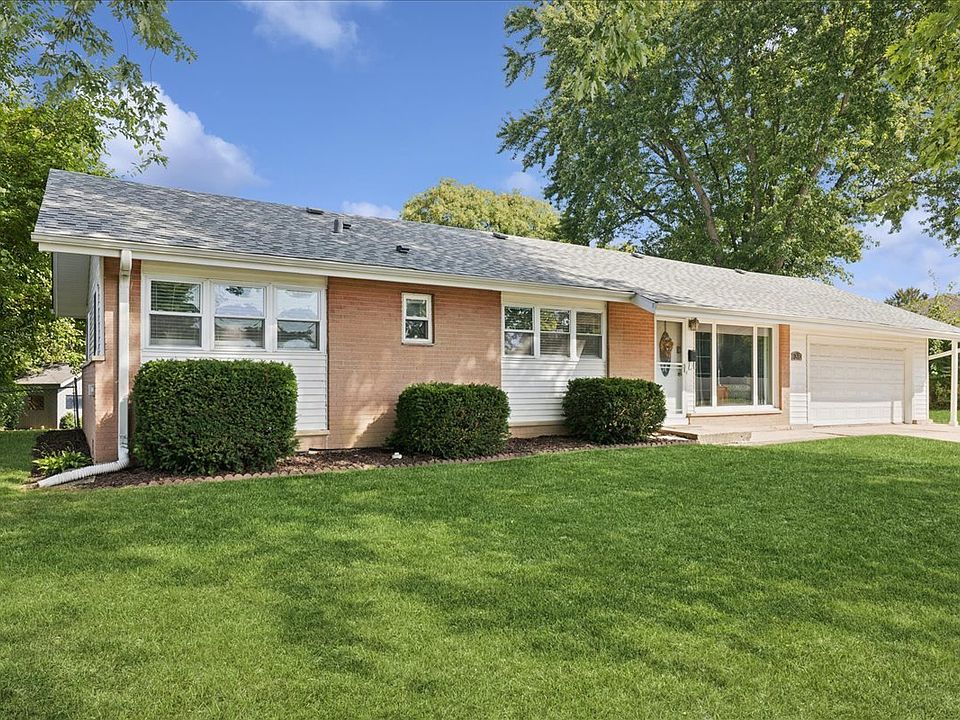 Sprawling brick ranch on an oversized fenced lot. This well-maintained home features a spacious family room with stone fireplace, bench seating, hardwood floors, and sliding doors to the patio. The kitchen includes butcher block countertops, stainless steel appliances, and an island with modern light fixtures. Living/dining room combo with hardwood floors and large picture window. All bedrooms offer hardwood flooring. Updated full bath with ceramic tile and vanity. Deep garage provides ample storage space. Move-in ready and centrally located! Recent Updates: Roof, gutters, and fascia replaced (2021).HVAC system replaced (2019).Refrigerator replaced (2024)
