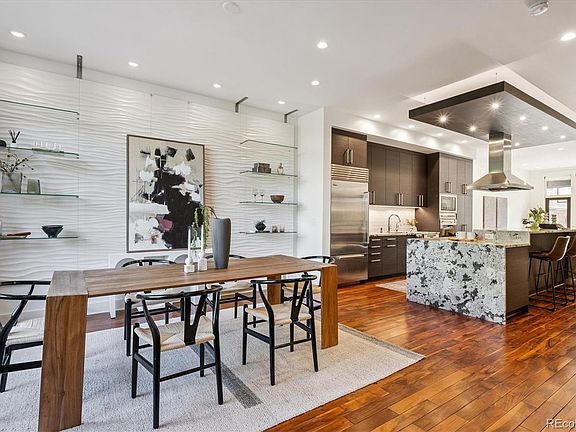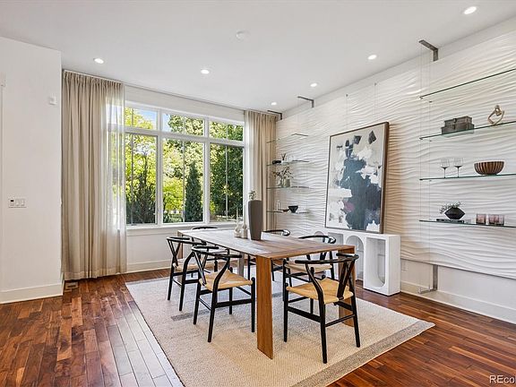 Cherry Creek North Masterpiece. Discover an exceptional contemporary residence at 370 Garfield Street in Cherry Creek North, where sophisticated design meets ultimate comfort. This 3-bedroom, 4-bath home boasts an elevator and four distinct outdoor patios, including a stunning rooftop deck with a fireplace and mountain views. The main level features a fully remodeled, open-concept kitchen with a waterfall island, Wolf/Sub-Zero appliances, and custom cabinetry. The dining room offers an art wall and abundant natural light. The living room flows seamlessly to a professionally designed backyard with water features and a pergola, featuring an updated stone fireplace and extended hardwoods. A convenient powder bath is also on this level. The entire second floor is a dedicated primary suite, a luxurious retreat with a stone fireplace, custom leather wall treatment, and a lavish spa bath with an air tub and steam shower. A full-size laundry is integrated into the primary closet. The third floor offers an additional spacious bedroom with a walk-in closet and private rooftop terrace. The versatile game room (ideal for office/lounge) includes a wet bar and private patio with a fireplace and mountain views, served by a well-appointed full bath. The basement features a large bonus room (rec room) with walkout access to a lower patio, a private bedroom with decorator lighting, and a full bathroom. Additional storage and a flexible space for laundry are also found here. This remarkable home truly embodies modern living. Experience its unique features and elegant design firsthand!