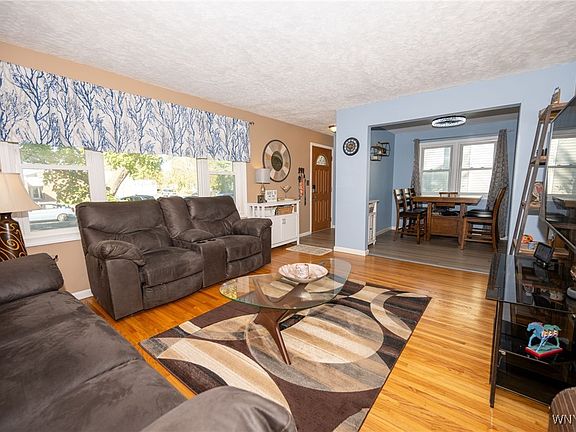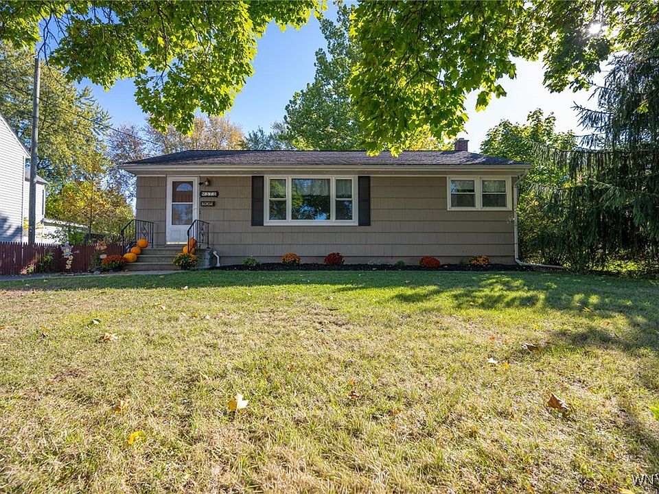 Desirable Ranch for sale in Lockport! This beautifully updated 3-bedroom ranch offers modern comfort and charm throughout. Step into a spacious living room filled with natural light from the updated picture window (2019), featuring privacy tinting for added peace of mind. Gorgeous hardwood floors run throughout the home, complemented by new light fixtures and ceiling fans. The stunning kitchen was fully renovated in 2022, boasting soft-close cabinets, granite countertops, and stainless steel appliances—perfect for both everyday living and entertaining. The completely remodeled bathroom (2018) features stylish tile work in the shower. Enjoy year-round tranquility in the beautiful three-season room, equipped with a cozy wood-burning stove and brand-new windows. The full basement offers even more space, including a pool table, workout bench, and tons of storage options. Step outside to your private, partially fenced yard with no neighbors to the right, perfect for gatherings or quiet evenings. The stamped concrete patio adds elegance to the backyard, along with a shed (2017) and playhouse for extra functionality and fun. Additional updates include: Hot Water Tank (2018), Air Purifier (2020), Blacktop Driveway (2021), Electrical upgrade with generator switch (2022). Don’t miss your chance to own this move-in-ready gem in one of Lockport’s sought-after neighborhoods, and directly across from Ann Merritt Elementary school! Showings start immediately!