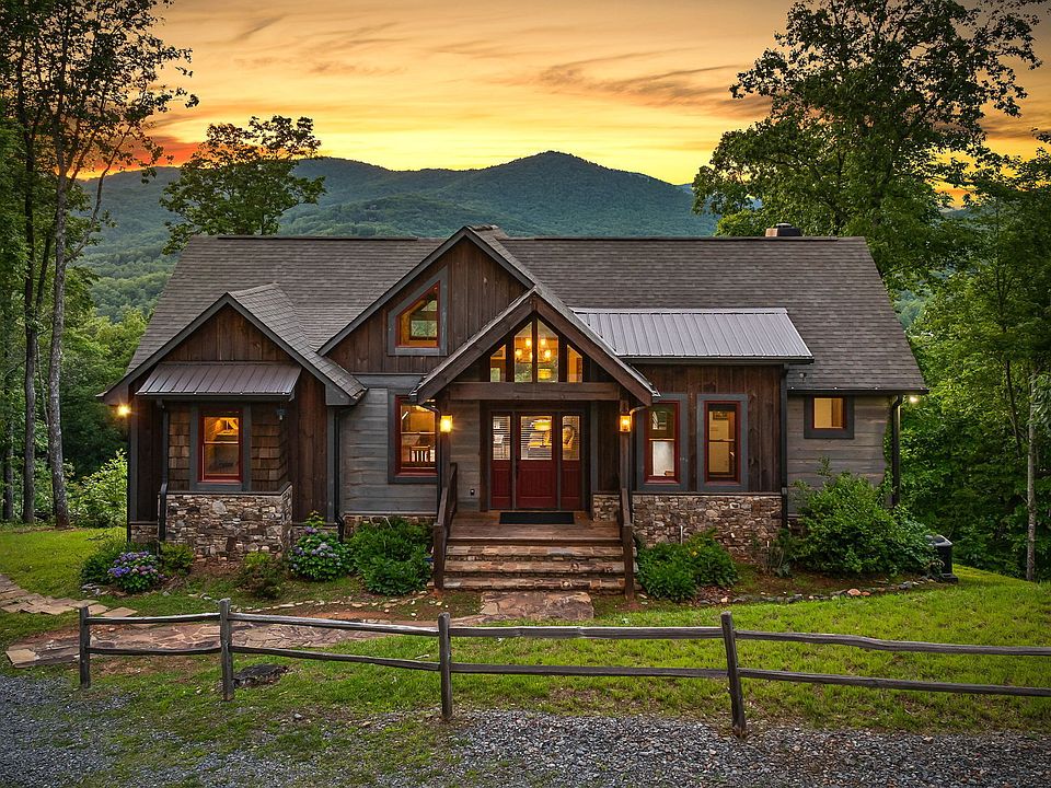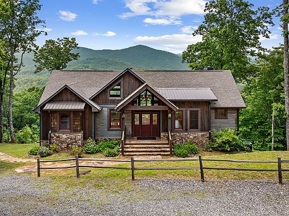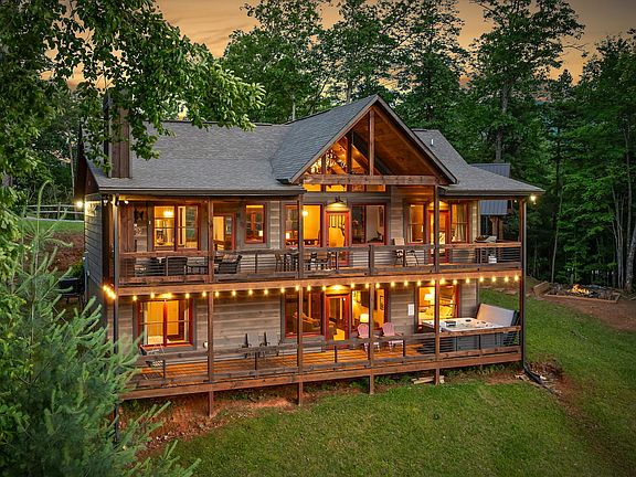 Discover mountain luxury at its finest with this stunning retreat, perfectly blending elegance, comfort, and natural beauty. Situated on a rare 3.45-acre cul-de-sac estate near the pristine Cohutta Wilderness, it offers exceptional privacy and breathtaking panoramic views. Private hiking trails along its borders create a secluded sanctuary for outdoor enthusiasts and refined mountain living. Enjoy mesmerizing sunsets over layered mountain ranges and peaceful pastoral vistas from both levels-each day becoming a visual masterpiece. Built with top finishes and meticulous craftsmanship, the open-concept design combines style and practicality. The gourmet kitchen features high-end appliances, custom storage, and luxury finishes, inspiring culinary excellence. Grand stone fireplaces anchor spacious living areas, radiating cozy sophistication, while floor-to-ceiling windows flood the space with natural light and frame stunning mountain sunsets. Outside, elegant patios and a large entertainment porch are perfect for all-season gatherings. An outdoor fireplace adds charm for cool nights, and a private hot tub offers year-round relaxation with sweeping views of Blue Ridge's landscape. The lower level includes two bedrooms, ample storage, a stone fireplace, and a spacious family room with a full bar-ideal for hosting or quiet evenings. Premium amenities include whole-house water filtration, advanced wireless security, high-speed internet, and a stylish new two-car carport with EV charging. Ample parking and dedicated space for outdoor gear add convenience. Fully furnished with elegant decor, this move-in-ready home is ready for immediate enjoyment. Located near protected USFS land, access to hiking, fishing, and outdoor pursuits is effortless. Just 20 minutes from Blue Ridge, trout streams, and Lake Blue Ridge, this property is perfect as a year-round residence, luxury vacation retreat, or private mountain estate-sold without HOA fees.