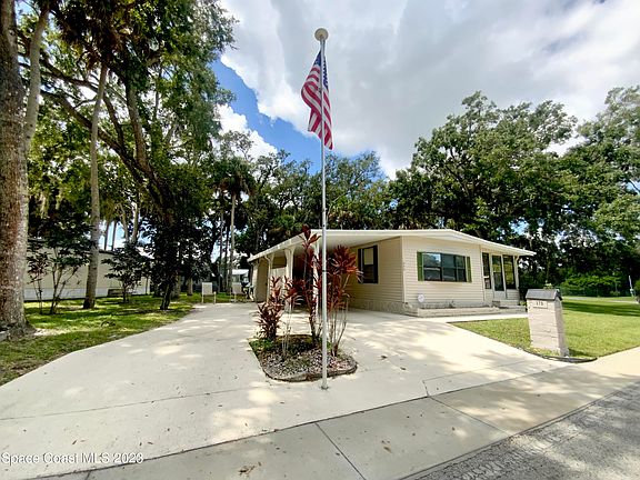 GREAT HOUSE ON A SCENIC LOT! Located next to a greenspace, & arguably on one of the best lots in Holiday Park, this 2Bdrm 2Ba home has much to offer! The eat-in kitchen has lots of cabinet space, there is a bedroom & a bathroom on each end of the home, a large Florida Room provides extra living space & room for entertaining, an outside shed houses the washer/dryer & water heater, & another shed provides room for a workshop or she-shed. Plus, this 14'x60' singlewide is 4' longer than the majority of homes in this community that are of the same make & model. Holiday Park is an active adult community where there is NO LOT RENT! If you own the home, you own the land too! Beaches, restaurants, grocery & home improvement stores, library, banks, hospital & pharmacies are just minutes away!