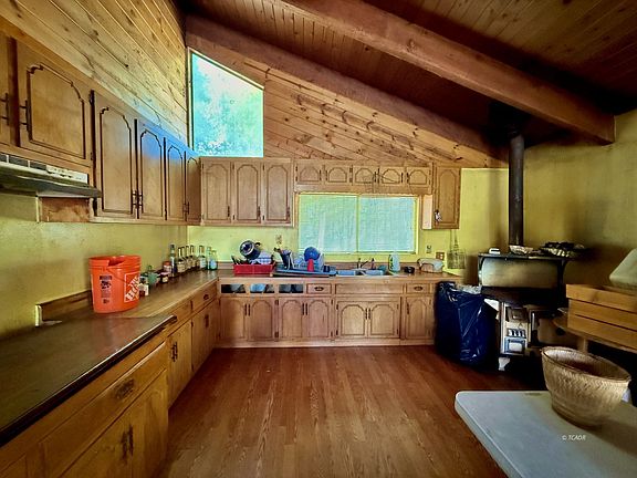 2 Lots and Pond on 3ac, Brand New Well, Big Home and Barn. Two adjacent 1.5+ acre lots each with garden sites and solid temporary greenhouses already set up... Newest well and solar water pump components are only 3 years old. A larger 3BD/2BA home with cathedral ceilings and exposed beams. The wrap around deck would make for great outdoor entertaining in the summer overlooking the pond. This well established ranchette was left abandoned a few years ago and will need some plumbing repairs and finishing touches to become a fully functioning residence again. Property is set up for off-grid living with generator wiring, some solar features and a wood-fuel cook stove. After cleanup and repairs, this could be one of the largest, most solid and complete homes in the Trinity Pines subdivision. There's a small pond on the property, bearing water year-round with bass and goldfish. The large garage/barn has room for several cars on the ground level, but also has workshop spaces on each side and an upstairs area for additional storage or an ADU apartment for guests. Parts of garage are insulated with reflective panels and it's fully wired for electric. Both parcels are fully fenced.