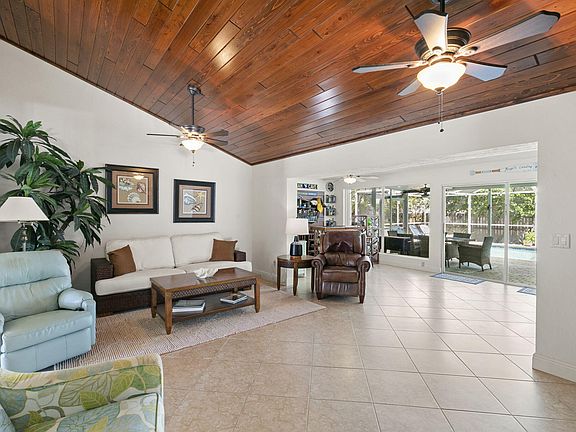 Situated on a spacious corner lot in beautiful Marco Island, this meticulously maintained 3-bedroom, 3-bath home blends comfort, convenience, and peace of mind. Step inside to discover vaulted wooden ceilings that add warmth and character to the main living spaces, complemented by a stylish dry bar—perfect for entertaining. Plantation shutters throughout and custom closet cabinetry elevate both function and design. The home is equipped with a new HVAC system and pool heater, while the vibrant multicolor pool cage sets the tone for outdoor living. A unique outdoor shower and dedicated pool bath make transitioning from poolside to indoors a breeze. Professionally designed landscape lighting enhances the home's curb appeal, front and back, while custom garage cabinets and generous indoor storage add everyday practicality. Stone-encrusted metal roof bring a distinctive flair, and peace of mind comes from manual hurricane shutters, transferable flood insurance, and termite treatment. This is island living, thoughtfully upgraded.