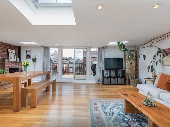 Must see, rarely available Penthouse level floor-through home w/ a private deck overlooking the iconic tree-lined Marlborough Street. Located on the top level of a classic Back Bay brownstone, this classy & spacious 2 bed/1 bath condo features an open living/dining area, perfect for entertaining friends and family. The kitchen is equipped with granite countertops, stainless steel appliances and plentiful cabinetry. A front facing sliding door off of the living room leads to the home’s private outdoor escape with views of one of Back Bay’s most coveted streets. Two equal sized bedrooms, contemporary tiled bath & modern amenities including central AC, hardwood floors, remote controlled skylight & W/D hook up, round out this perfect city abode. Professionally managed & pet friendly. Its proximity to all the fine shops & restaurants of Newbury Street & Prudential Center, Commonwealth Avenue Mall and the Charles River Esplanade, makes this Back Bay home so accessible and desirable.