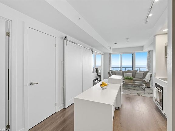 Stunning 1 Bed + Den suite at the highly sought-after Nautique in Burlington’s vibrant waterfront core! This ultra-modern unit features an oversized balcony spanning the entire width of the suite, offering panoramic south-facing views of Lake Ontario, perfect for enjoying spectacular sunrises and sunsets. The open-concept layout includes pocket doors, a sleek kitchen with built-in appliances, pantry, and ensuite laundry in the primary bedroom. The spacious primary suite features double closets and a spa-like ensuite bath. The den is ideal as a home office or guest space, and there's ample closet space throughout for all your storage needs. Enjoy resort-style amenities in one of Burlington’s most iconic waterfront buildings, just steps to the lake, parks, dining, shops, and transit.