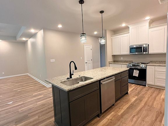 Welcome to your brand-new home at the end of a quiet cul-de-sac in the desirable Meadow Creek subdivision of Haskell, AR. This thoughtfully designed residence combines modern finishes with everyday convenience, making it perfect for families or anyone looking for a fresh start. Step inside to find luxury plank vinyl flooring throughout, offering both durability and style. The spacious open floor plan creates a seamless flow from the living room to the kitchen and dining area. The kitchen features granite countertops, custom cabinetry, and all-electric appliances, ready for both weeknight dinners and weekend entertaining. The primary suite includes a spa-like bath with a beautifully tiled walk-in shower, double vanities, and a large walk-in closet. Additional bedrooms are generously sized, offering comfort and flexibility for family, guests, or a home office. Located just minutes from Harmony Grove Schools, this property offers the peace of cul-de-sac living while keeping you close to town amenities. With modern construction, quality finishes, and a prime location, this home is move-in ready and built to impress.