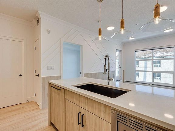 Welcome to an exquisite 1-bedroom plus den condo in the sought-after community of Currie Barracks, where classic design meets modern comfort. Situated on the second floor of a quiet, upscale building, this home features a warm, airy color palette, thoughtfully curated finishes, and an inviting atmosphere perfect for professionals or anyone seeking refined, low-maintenance living. Step into the building and you’re immediately greeted by a beautifully designed lobby area that sets the tone for the elegance and attention to detail carried throughout the rest of the property. It’s a welcoming space that reflects the quality and charm of the entire building. Inside, you'll be greeted by vinyl plank flooring, 9-foot ceilings, and detailed crown mouldings that carry throughout the space. Wainscotting on crisp white walls adds architectural charm and elegance, while oversized windows invite natural light to flow into every corner. The kitchen is the heart of this home, boasting a stunning waterfall-edge quartz island, premium stainless steel appliances, a built-in refrigerator and dishwasher, a gorgeous designer backsplash, and a sleek covered range hood — all combining to deliver both function and style. The open-concept layout seamlessly connects the kitchen to the living and dining areas, creating an ideal setting for entertaining or relaxing at home. Off the main living space is a generous-sized primary bedroom, featuring large windows and a spacious closet. Just steps away, the four-piece bathroom is finished with beautiful modern touches, including elegant tile work and contemporary fixtures, offering a spa-like experience right at home. A good-sized den or office space provides flexibility for working from home, reading, or hosting overnight guests. Additional conveniences include in-unit laundry with built-in storage, rough-in for air conditioning, and one titled underground parking stall with pay-per-use EV charging stations, offering comfort and sustainability in equal measure. The building is pet-friendly and permits short-term rentals, making it an ideal opportunity for both owners and investors. Whether you’re a first-time home buyer, an investor looking for a flexible income property, or a downsizer seeking elegant simplicity, this home offers exceptional value and style in a prime location. Ideally located just minutes from Mount Royal University, Marda Loop, downtown Calgary, and some of the city’s best parks, shops, and cafés, this home also offers quick access to Crowchild Trail and Glenmore Trail, making commuting or exploring the city a breeze. Don’t miss your chance to own this stunning home — book your private showing today!