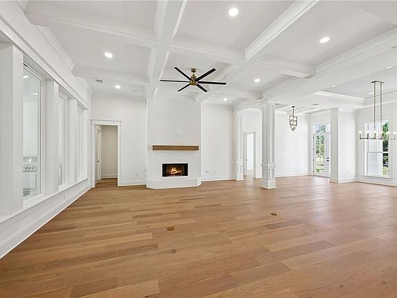 Set on 1.38 acres in the gated Brookstone neighborhood, this 5,610 sq ft home offers a perfect blend of luxury and livability. Soaring ceilings, wide-plank wood floors, and large windows fill the interior with natural light, framing views of the conservancy beyond. Throughout the home, gold-toned accents in lighting, hardware, and finishes add a subtle touch of glamour, elevating each room with warmth and refinement. The kitchen, at the center of the home, serves as both a showpiece and a gathering place, featuring sleek quartz countertops and backsplash, complemented by custom cabinetry that extends to the ceiling. A professional-grade range with griddle, dual dishwashers, and double ovens makes entertaining effortless. The butler’s pantry adds both style and function, complete with a wine cooler, ice maker, and abundant storage. The open-concept living and dining areas flow smoothly, highlighted by coffered and tray ceilings that add depth and style. The primary suite offers a private retreat featuring a spa-style bath, a stand-alone tub, dual vanities, and a custom walk-in closet. Four additional well-proportioned rooms offer comfort and privacy. Upstairs, a flexible floor plan features a media room, a bonus/game room and a private guest suite with connecting bath. Outside, a large covered patio with a fireplace and outdoor kitchen extends the living space for quiet evenings or lively gatherings, surrounded by nature and privacy.