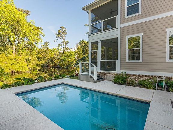 Perfection! This incredibly beautiful home is only 1 year old. Five bedrooms, 4 1/5 baths creates a lot of gorgeous living space. There is a first floor bedroom and bath, formal dining room and large open plan with huge kitchen and living area opening onto one of the large screened porches with ceramic wood tiles, on all porches, back porches have wonderful view of lagoon. Second floor features 4 bedrooms, one being used as an office, laundry room and wine and coffee bars and second screened porch. This great home also features an in ground pool, also with lagoon view. This home has been impeccably cared for and ready for new owners. See supplements. This home has a reverse osmosis filter in the kitchen, a hepa filter and UV lights added to the central air system.