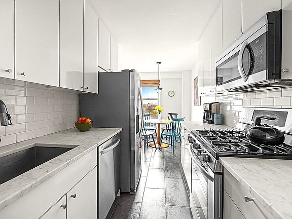 This beautifully renovated home has everything on your wish list. Three generously-sized bedrooms, 2 full baths, a huge eat-in kitchen and your own private terrace. Open views extending all the way to the Verrazano Bridge are truly exceptional and allow for all-day sunshine and dazzling sunsets. And at 1,445 SQUARE FEET INSIDE AND 180 SQUARE FEET OUTSIDE, it’s a home you can grow into, not out of.