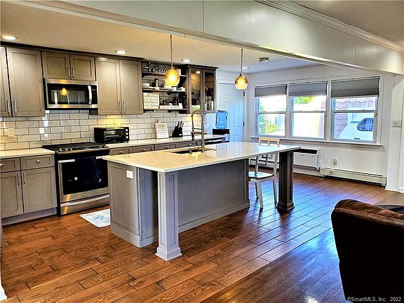 Welcome Home! This lovely 3-bedroom, 1.5 baths colonial, is everything you have been looking for! The open floor plan allows for easy flow throughout the main level! This space is perfect for relaxed and easy seasonal entertaining, with a newly renovated kitchen appointed with quartz countertops and stainless-steel appliances and center island make entertaining a breeze! First floor half bath. Laundry conveniently located on the second floor. Upstairs are three generously sized bedrooms with plenty of closet space. Enjoy a BBQ or relax in the private backyard. Convenient to I84, 95, route 8 & 7 & 25 and Bridgeport train station. DON'T MISS THIS BEAUTIFUL HOME! PLEASE READ SHOWING INSTRUCTIONS!