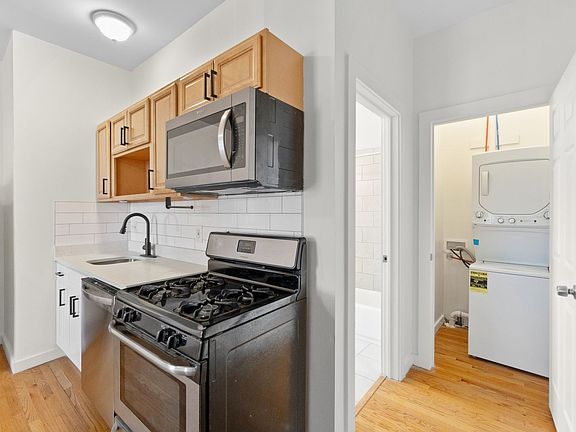 - Kitchen includes: stainless steel refrigerator, gas stove/oven, dishwasher, and microwave