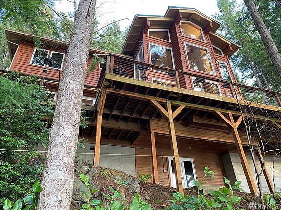 Extraordinary custom waterfront home on beautiful Pulali Point. Nearly 200 ft on Jackson Cove which ties into Dabob Bay on Hood Canal. 1.4 acre nw forest setting. Short walk down to private decks on water, easy access for swimming, boating (mooring buoy) crabbing, shrimping, and fishing. Home has expansive windows to capture light/view, fir trim and custom fir cabinetry, easy broad/low stairs take you upstairs to loft or down to utility area and unfinished space. Detached 3 car garage with shop.