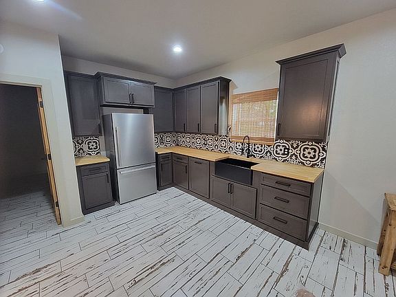 Butcher block counter.