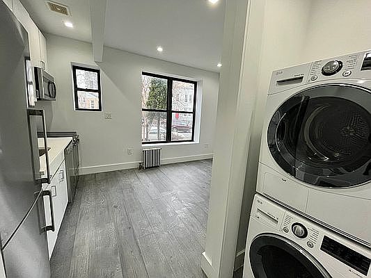 Live in this brand new 1 Bedroom ; 1 Bath apartment with PRIVATE BACKYARD! Recently renovated, this gorgeous walk-up apartment features high ceilings, hardwood floors, and a brand new kitchen with stainless steel appliances including a dishwasher. Apartment Features: -Private Outdoor space -1 queen size bedroom -Washer/Dryer in-unit -High ceilings with recessed lighting -Large windows give great natural light -New hardwood Floors -Stainless steel appliances including dishwasher & microwave -Heat and hot water included Short distance to 2/5 and also accessible to the Q/B/S trains. In close proximity to a plethora of restaurants, bars, shopping centers, supermarkets and coffee shops!