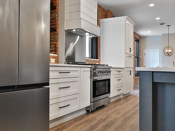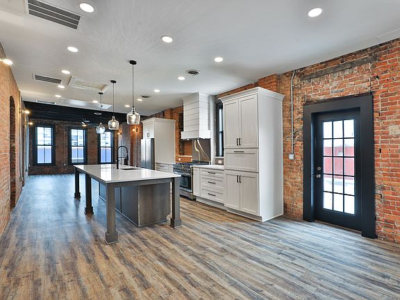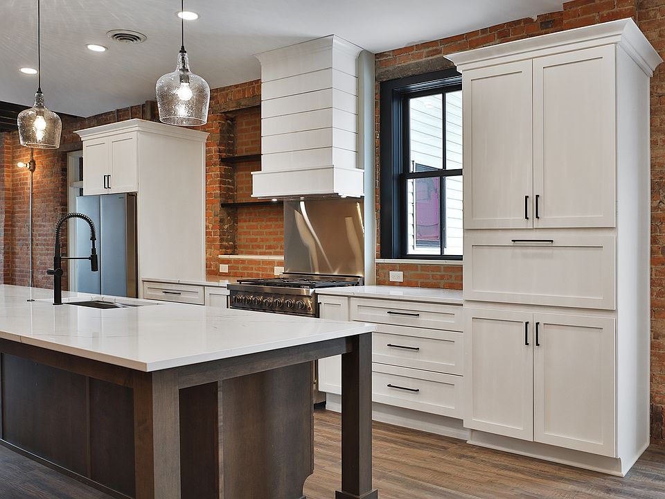 Modern lightingLuxury finishesStainless steel appliancesExposed brickQuartz countersHigh ceilingsCeiling fans