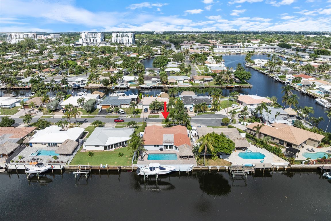 Beautifully updated 3BR/3BA ocean-access waterfront home on a quiet cul-de-sac with a 65 ft dock, a newer 20,000 lb boat lift, raised seawall, heated pool, jacuzzi, and a tropical turfed backyard. Two waterfront primary suites facing the water, newer barrel tile roof and full impact windows/doors. Oversized two-car garage with plenty ...