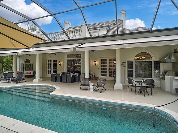**Meticulously maintained, architectural perfection, this bright, spectacular estate featuring incredibly spacious first floor living space, with 5-Beds, 6.5 Baths, private second floor family, au pair and/or guest quarters, new pool, ideal Flood Zone X location, important updates, property wide landscape renovation and a 3-Car Garage. The expansive first level has extraordinary living space: a primary suite, with TWO primary baths, and remarkable storage/closet space; an inviting living room with fireplace, a large formal dining room, a ‘light and bright’ gourmet kitchen, an eat-in kitchen area, an office, a den/media room, separate laundry room and extraordinary storage, All on the first floor. The first floor windows/doors face and/or open onto the lanai and the back gardens for massive light and enjoyment. Perfect for one level living, this special estate also offers two private, spacious second floor wings accessed by separate stairways: a second primary (in-law or au pair) on the south side and 3 bedrooms/2 baths and a delightful balcony on the north side for guests or kids! Each side with separate HVAC controls. Enjoy the expansive lanai with generous covered entertaining area, a new heated saltwater pool & spa, new retractable awnings, renovated screen cage with new panorama screens and new outdoor grill. An entertainer's dream. The back of the property backs up to the very quiet Spanish Point butterfly garden. The property’s landscape renovation provides privacy and beauty. This estate also boasts remarkable attributes including high ceilings, hardwood and marble floors, custom designed plaster crown moldings, impressive wood paneling, built-ins, wainscoting, property-wide landscape renovation (lighting, irrigation and Rainwater control system), a cozy gas fireplace and very generous storage. Updates: New roof in 2020. Others made since 2023 (last purchase): New HVAC (4 out of 5 units new since 2023); detailed List of Improvements made since 2023 and available upon request, includes but is not limited to energy savings improvements, hurricane resilience, lower insurance rates, new gutters, new awnings, new pool and equipment, Hayward pool control system and new gas pool heater; tinted windows; 500 gallon propane tank; etc. Situated just steps away from Little Sarasota Bay waters in the Tranquil West End of the highly sought after Bayside neighborhood within The Oaks Country Club community, this estate is built by Baron Construction, one of Sarasota’s Finest Custom Builders and is on a nearly half acre lot with circular driveway and wonderful curb appeal. The Oaks is a distinguished, 24hr guarded, Country Club Community which boasts many accolades including: Platinum Club of America, Emerald Club of the World, Elite Distinguished Club of the World and One of America’s Healthiest Clubs - where amenities include Three Restaurants, Ballroom, Two 18-hole championship GOLF courses, award-winning RACQUETS program with 12 Har-Tru Hydro-Grid TENNIS courts, 4 PICKLEBALL Courts, wonderful CROQUET facility, state-of-the-art FITNESS center and junior Olympic, heated community SWIMMING POOL, Bocce, Basketball Court, Playground and more! The Oaks is just minutes from nationally ranked Pine View School, the Legacy Bike Trail, area Beaches and all that Gulf Coast living has to offer. Membership is required and there is NO WAITLIST for GOLF or SOCIAL Membership. **PLEASE ENJOY VIEWING THE 3D VIRTUAL TOUR and AERIAL VIDEO**