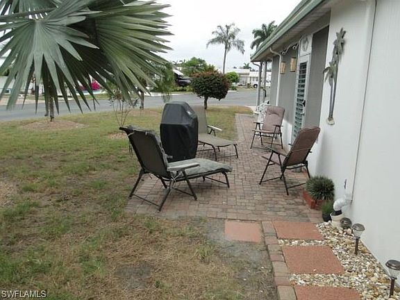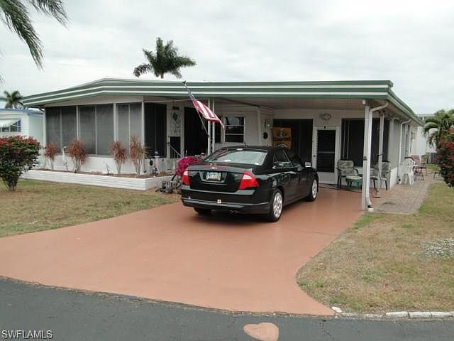 very pretty home located close to Club House and Pool, pretty yard with bordering palm trees and plants. has 2 large bedrooms with baths, lot of closet space and storage, enclosed lanai, florida room, nicely furnished, air cond new in 2010, roof new in 2004 by Ams, water heater new 2010, plumbing under house has been replaced.there is a $1000.00 transfer fee paid by buyer. Low monthly Maint fee of $45