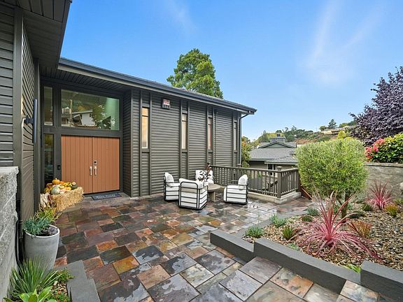Welcome to 370 Via La Cumbre, Greenbrae. This bright, contemporary home offers 2,712 sq. ft. with sweeping Bay views and a flexible floor plan. The main level features a sun-filled living and dining room with vaulted ceilings and a wall of windows, a chef's kitchen with skylights and stainless steel appliances, a view deck with spa,and a spacious primary suite with a walk-in closet, an ensuite bath, and a powder room. Downstairs includes a large family room with built-ins, three bedrooms, a full bath, laundry, and access to the level yard with turf, a putting green, a cabana, and fruit trees. Additional highlights: Tesla solar roof with Powerwall + charger, oversized 2-car garage, and private gated courtyard. Minutes to Bon Air shops, Larkspur Ferry, Hwy 101, and Bacich/Kentfield schools.