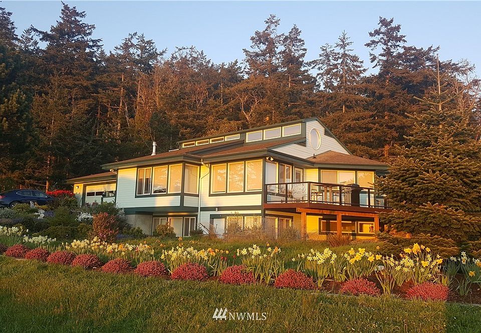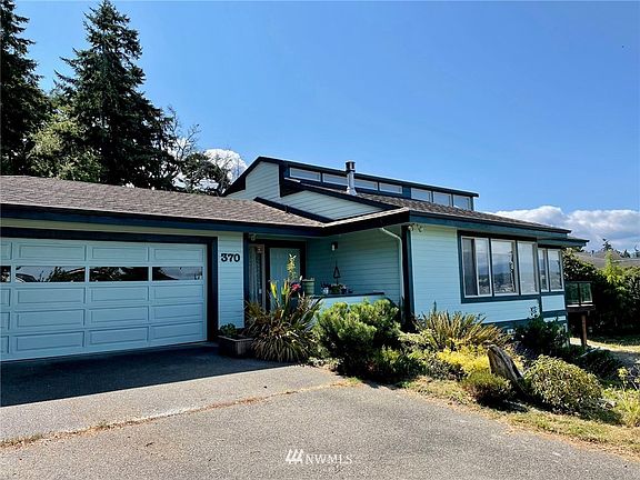 Beautifully updated home with million dollar west facing view of Olympic Mountains, Discovery Bay, Diamond Pt. & Protection Island. Features mahogany flooring on main level, staircase and landings. Berber carpeting on ground floor. Living room w/gas fireplace set in variegated travertine to the vaulted ceiling. Tiger wood deck w/ glass railings off the dining room. Kitchen has new appliances. Main level master suite w/ walk-in closet, office w/closet and half bath. Light filled much of the year with skylights & large circle window. Two car attached garage with built in cabinets, shelves and workbench. Property landscaping includes fruit orchard, berry bushes, rhodies and bulb garden. Back lot line adjoins a 5 acre mostly forested property.